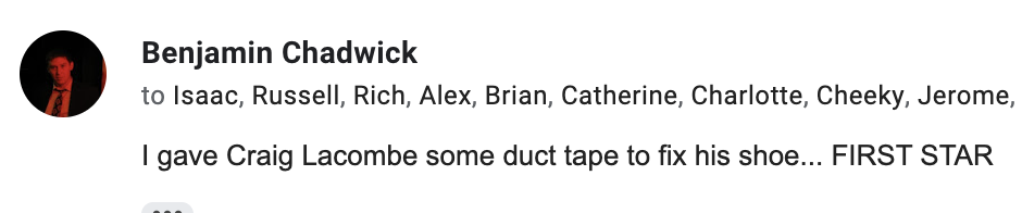 Fuck retirement!!!! Thanks for giving Craig some duct tape to fix this shoe* !!!!